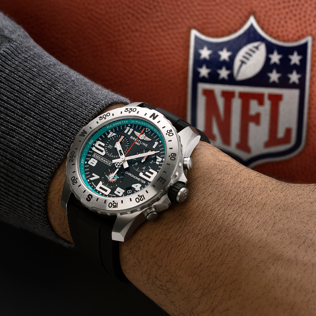 Breitling celebrates its partnership as the Official Timepiece of the NFL with the launch of the new NFL Collections. Featuring the Endurance Pro 44 and Chronomat GMT 40, every edition represents one of the 32 NFL teams—crafted with precision, performance, and passion.
